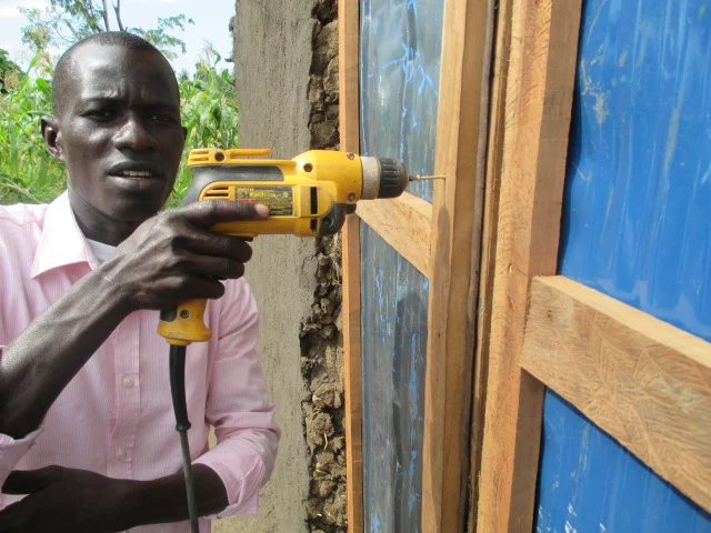 This time when I recieved again another great donation funds from my American Mom (sis Catherine Shelton), I managed to travel together with my son/partner pr Josua Mukisa to Lusenke to continue with the church house and Latrine contruction project. Within two weeks time, we were able to work on the house by the help of some trained village builders. Working from the first step of cutting the poles up to the iron roofing. As you can see in the photos.